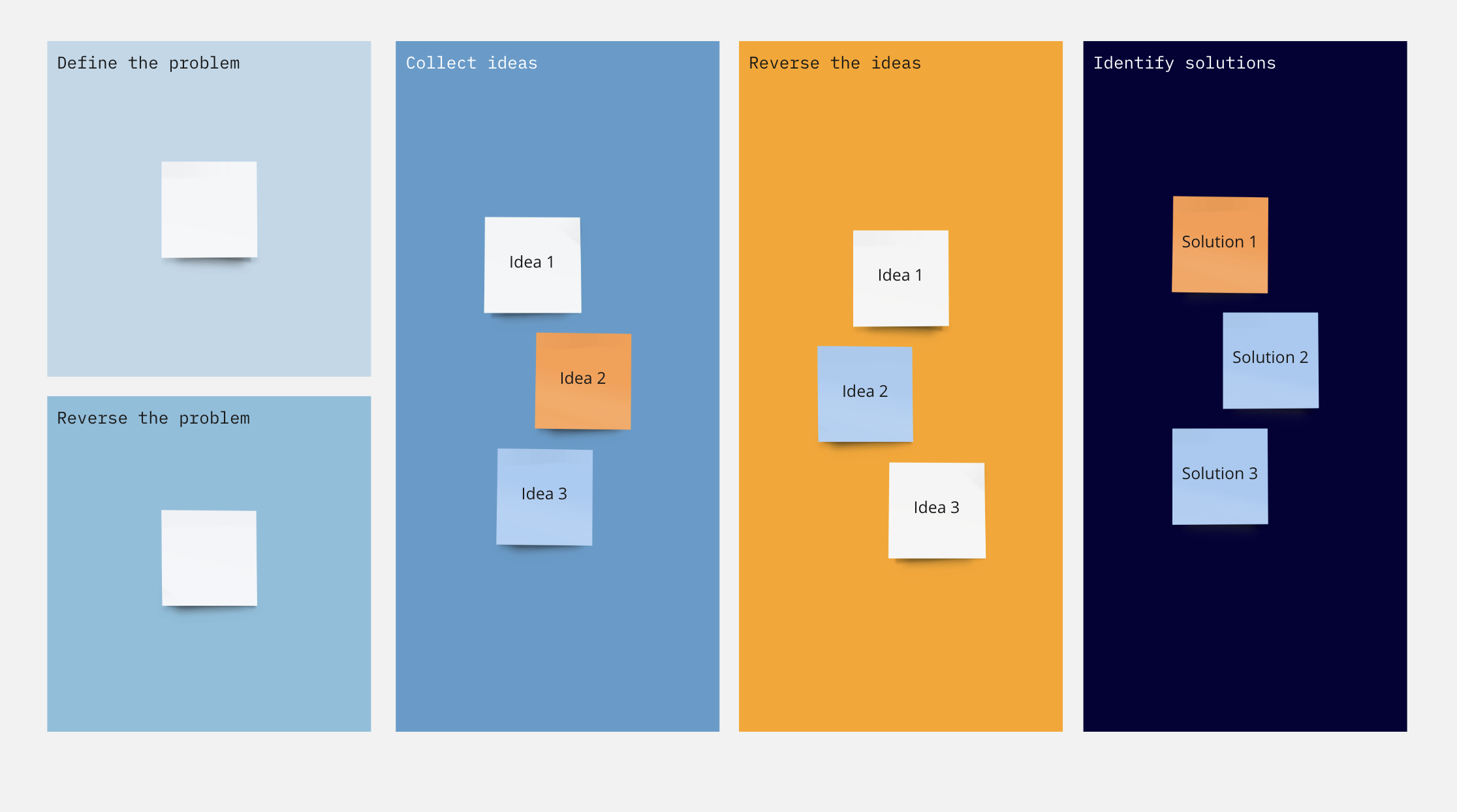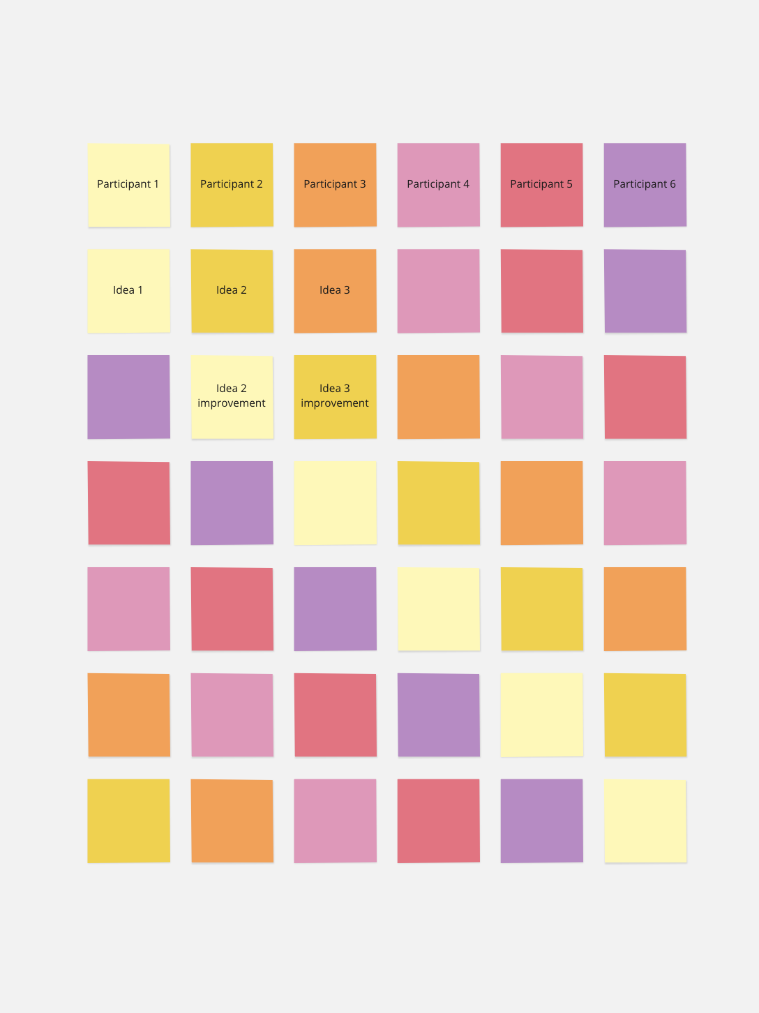 Jeśli zwykłe sesje burzy mózgów nie przynoszą oczekiwanych rezultatów, spróbuj je nieco urozmaicić, stosując reverse brainstorming albo brain writing. Poniżej przykłady z narzędzia Miro.